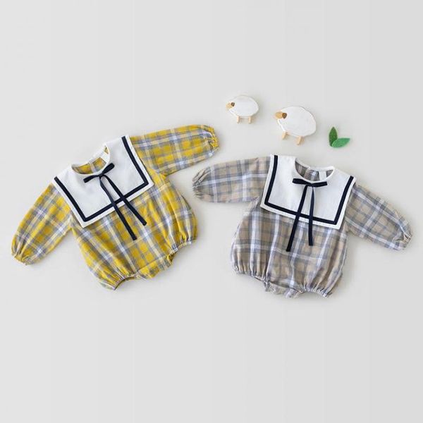 rompers 2021 autumn baby long sleeve clothes plaid print boys bodysuit infant girls jumpsuit with bow cotton toddler outfits, Blue