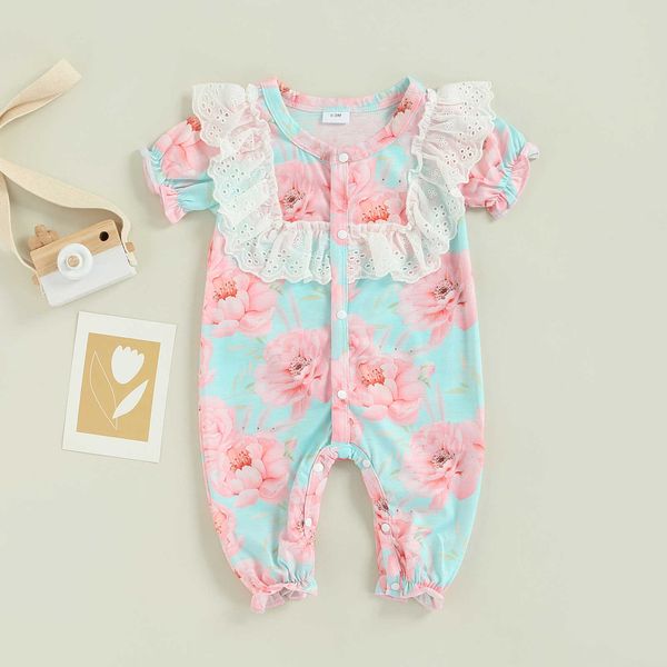 rompers citgeett summer infant baby girls short sleeve jumpsuit flower print snap romper casual clothes l230314, Blue