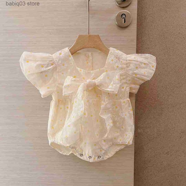 rompers newborn baby girls romper daisy sweet baby clothes flying sleeve sunsuit toddler bowknot princess romper playsuit for girls t230529, Blue