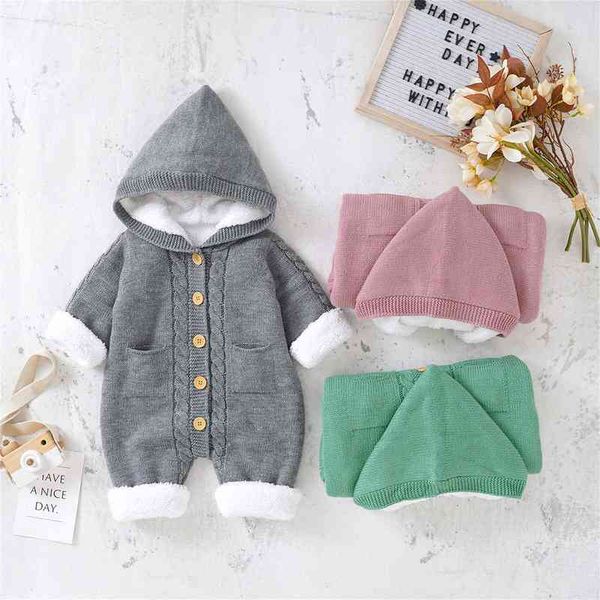 rompers solid knitting cotton long sleeves hooded outfit toddler baby boys girl romper winter autumn newborn baby girls jumpsuit clothing j2, Blue