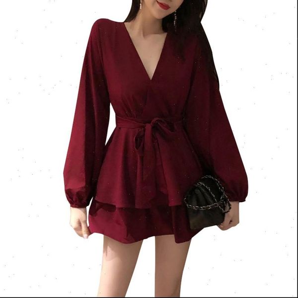 ropalia fashion loose casual womens jumpsuit deev v long sleeved high waist rompers trend solid color playsuits, Black;white