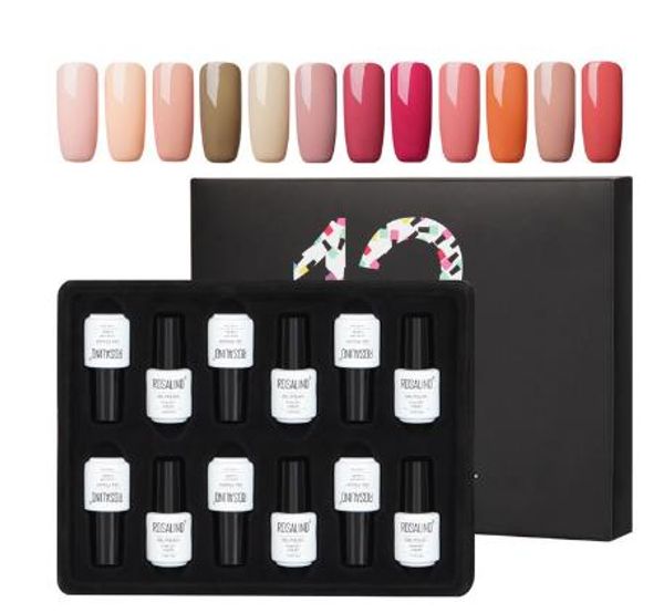 rosalind gel nail polish set acrylic nail kit 12pcs/set soak off hybrid lacquer semi permanent gellak varnish set for manicured, Red;pink