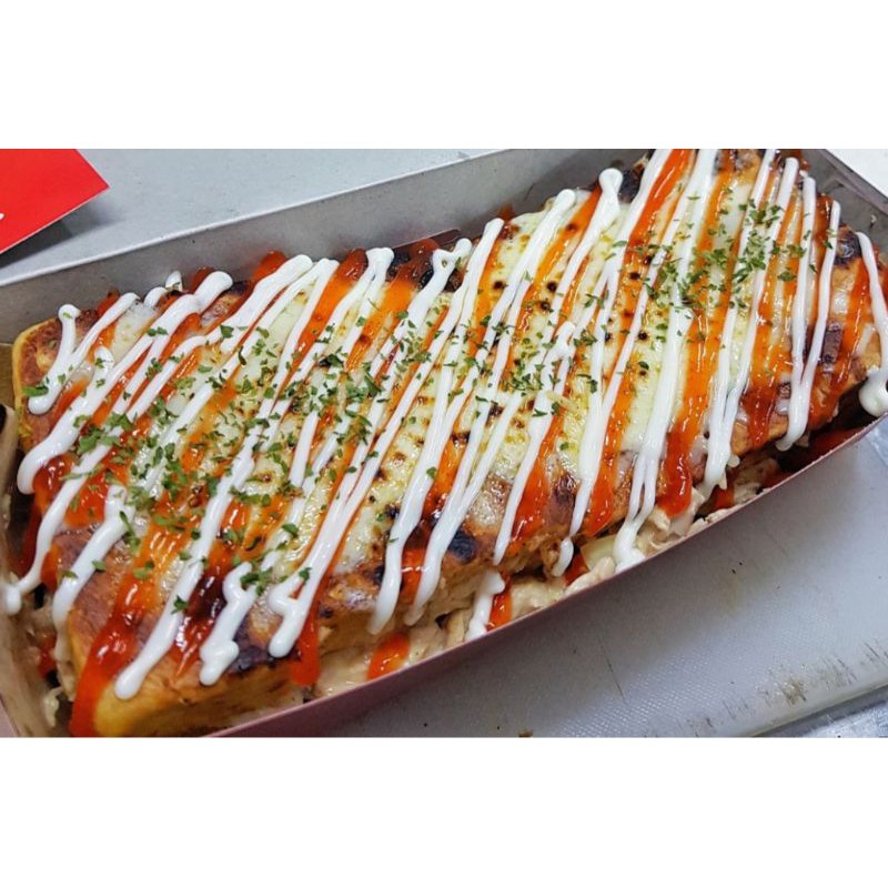 roti kasino dengan toping beef, keju, telur dan selada