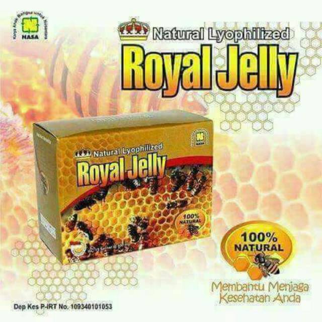 ✔Natural jelly adalah madu asli dari pokok ratu lebah. Yang berfungsi untuk mendukung sistem imun tubuh dari penyakit di luar tubuh. Royal jelly selain penambah energi, juga menurunkan kadar kolesterol, menjaga kesehatan jantung, dan membantu penyembuhan kanker.