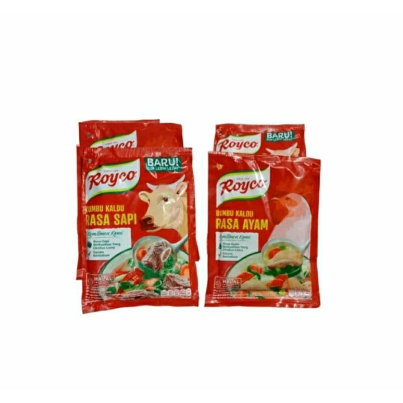 Royco Kaldu Ayam merupakan bumbu penyedap yang terbuat dari bahan-bahan dan rempah pilihan, termasuk daging ayam pilihan yang direbus lama. Memberikan rasa kaldu yang mantap pada masakan Anda. Tambahkan Royco Kaldu Ayam ke dalam masakan rumah. Mudah larut dalam masakan.