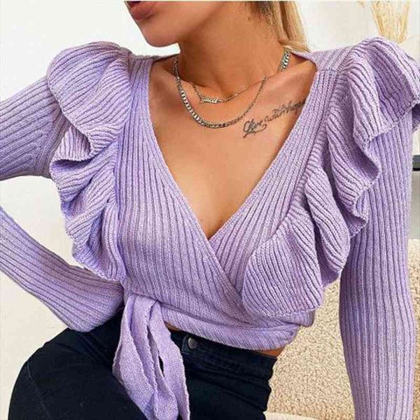 ruffles womens sweater cardigan knitted lace up deep v-neck long sleeve female cardigans spring korean lady sweaters, White;black