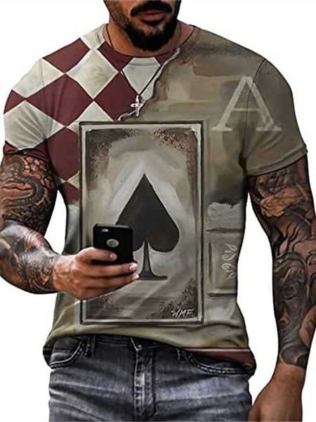 rukas t-shirt shirt graphic checkered poker neckline black/white red/white black blue purple 3d printing large-sized casual weekend short sl