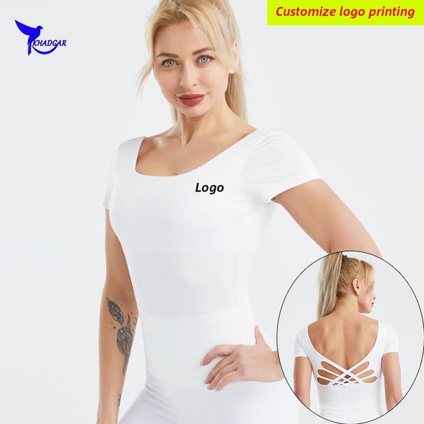 running jerseys 2021 backless built-in padded shirts women quick dry elastic workout yoga gym fitness sportswear t-shirt custom, Black;blue