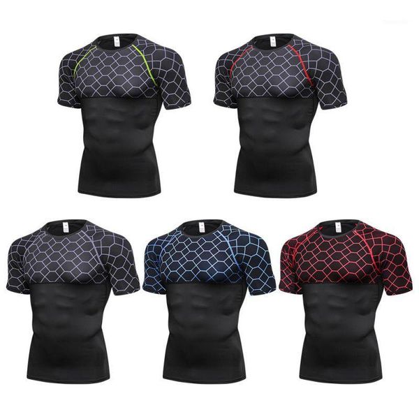 running jerseys men t-shirt high-elastic quick dry breathable training t shirt men's sport spring summer fitness short sleeve t-shirts, Black;blue