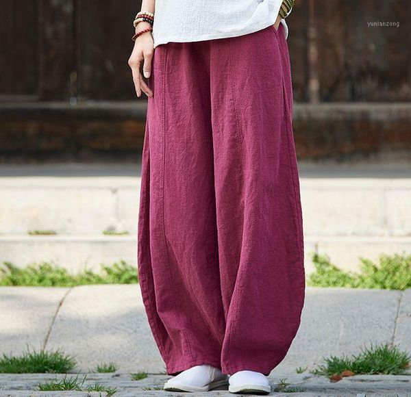 2024 New Elastic Waist Chic Girl Lady Spring Summer Cotton Linen Wide Leg Pants Street Fashion Women Casual Trousers