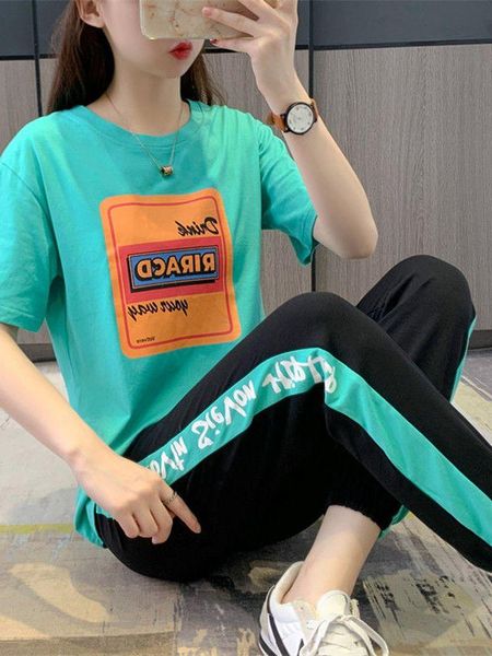 running sets cotton sports suit women's summer korean version fashion loose casual sportswear female two-piece jogging suits gym, Black;blue