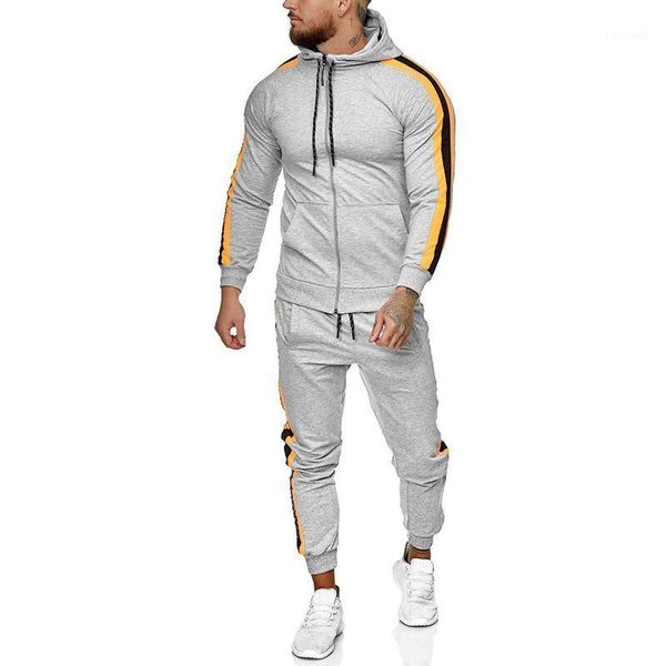 running sets men's tracksuit autumn winter two pieces zipper hooded sweatshirt joggers pants men drawstring outfits sportswear1, Black;blue