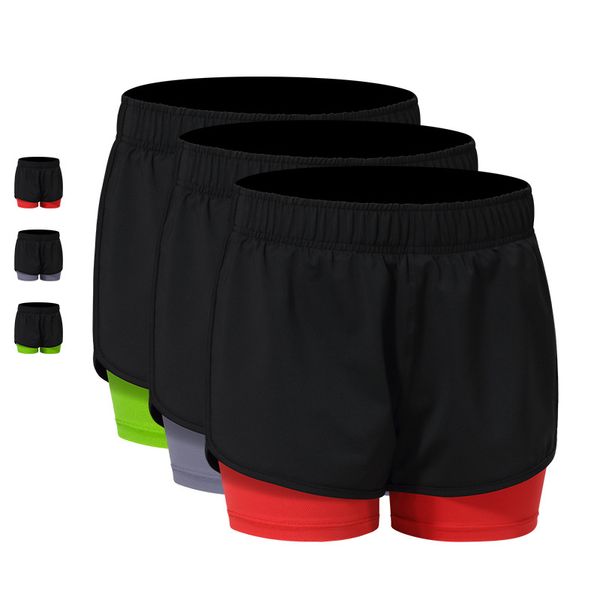 running shorts plus size women fitness clothing sports workout fake two pieces high waist breathable quick dry anti-sweat, Black;blue