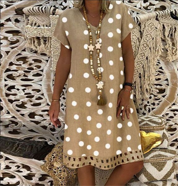 s-5xl плюс размер платья лета женщин винтажный горошек с коротким рукавом midi платье ретро printed сыпучие пляж повседневные платья платье, Black;gray