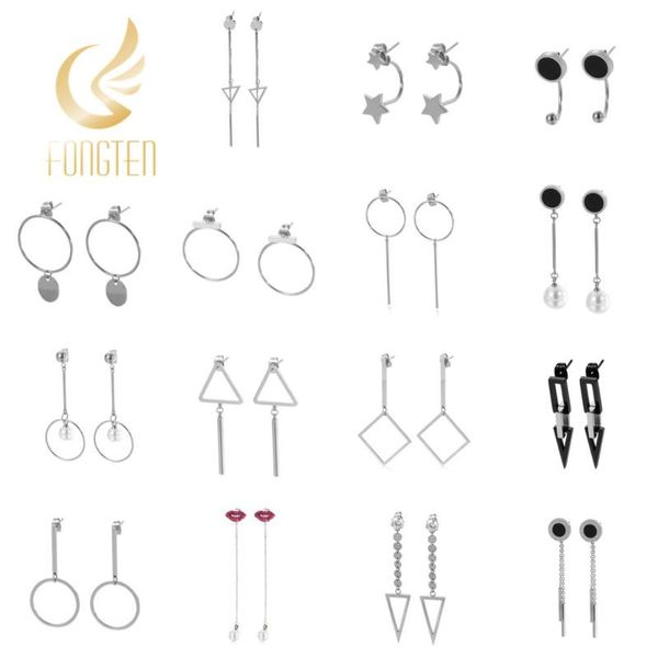 s dangling earrings women stainless steel korean fashion geometric jewelry, Silver