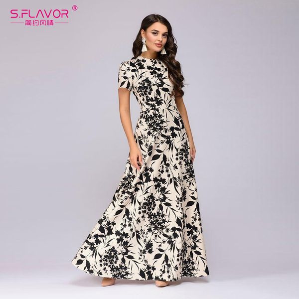 s.flavor women long dress short sleeve floral print boho dress elegant party dress slim maxi vestido de festa