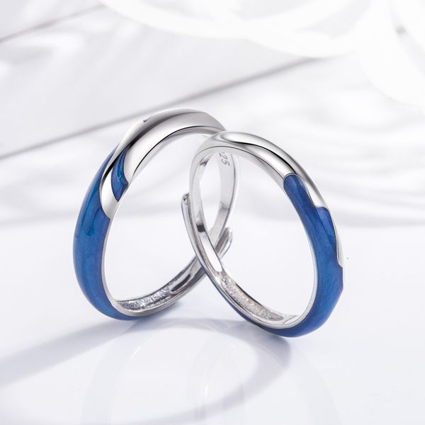 s925 pure silver couple simple personality men and women gift enamel ring opening