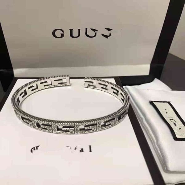 s925 silver carved square hollow out pattern making old open bracelet for men and women exclusive design jewel exclusive sale_ra4k, Black