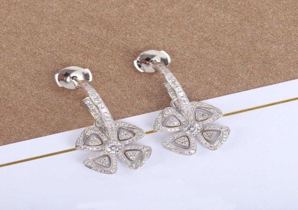 s925 silver charm drop earring with all diamonds and flower shape design hollow design for women wedding jewelry gift have box sta9551720, Golden