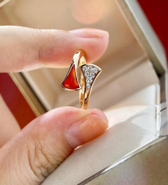 s925 silver opened ring with white shell and red agate diamonds for women wedding jewelry have stamp gift box ps89101219287