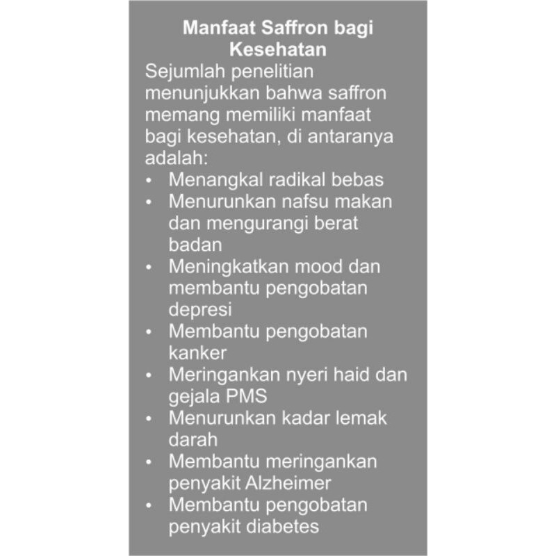 safron si kecil dengan kaya manfaat bafu kesehatan. salah satunya adalah :