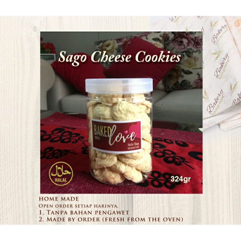 Sagoo cheese cookies ato kue sagu keju, terbuat dari tepung sagu, homemade tanpa bahan pengawet. Berat cookies 275gr dan berat dalam toples 324 gr.