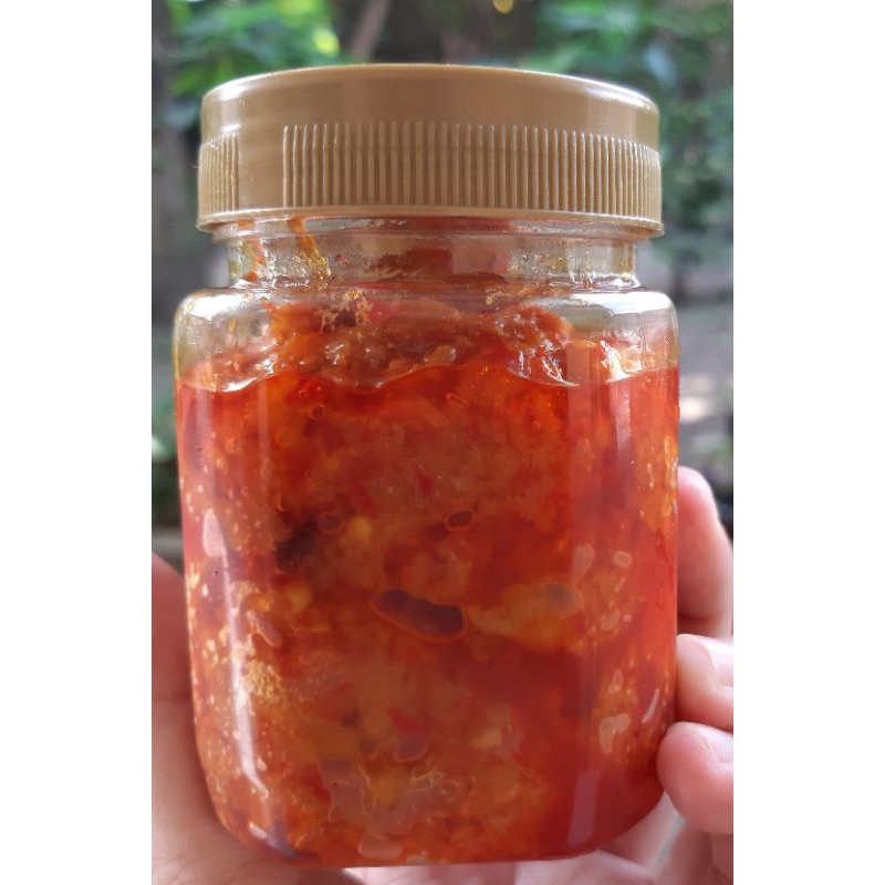 sambal siap saji khas palembang, terbuat dari baham baku cabai, durian fermentasi dan bahan lainnya.