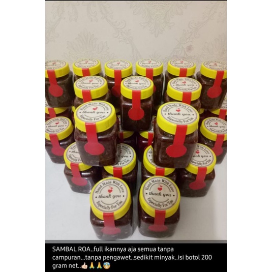 Sambel Roa Full ikannya aja semua tnpa campuran tanpa pengawet,sedikit minyak isi botol 200gr
