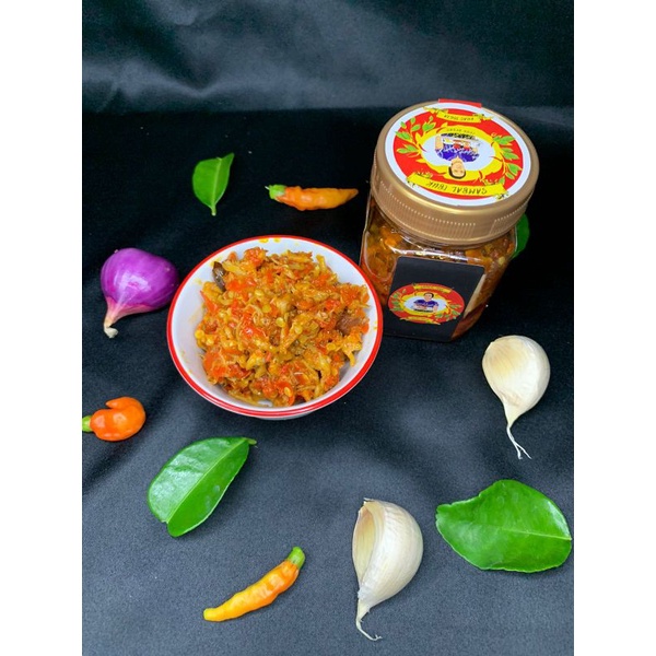 terbuat dr rempah2 pilihan bawang merah & putih,daun jeruk,sereh,cabe merah,cabe rawit dan teri medan. bahan2 100% fresh,berkualitas & hygienis. bumbu2 gula,garam,dll terukur sempurna membuat cita rasa sambal yg mewah kaya rasa