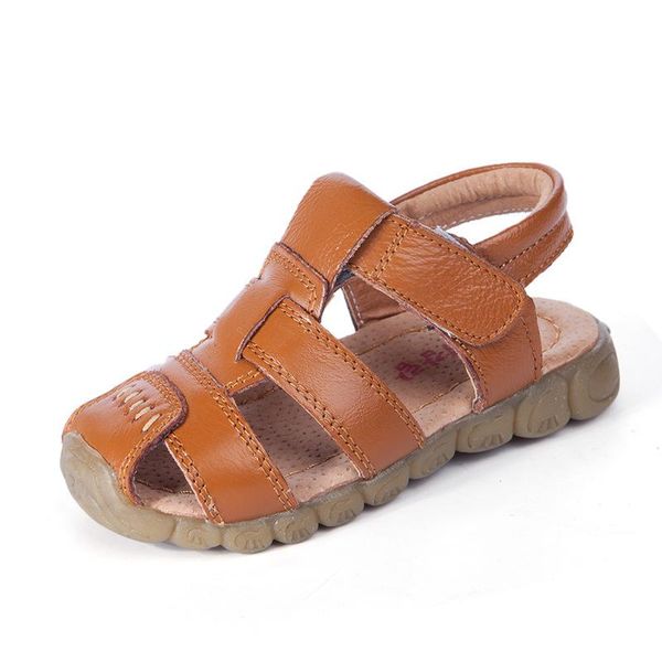 sandals 2021 summer genuine leather children boys beach shoes casual sports wear-resistant cow muscle bottom baby baotou, Black;red