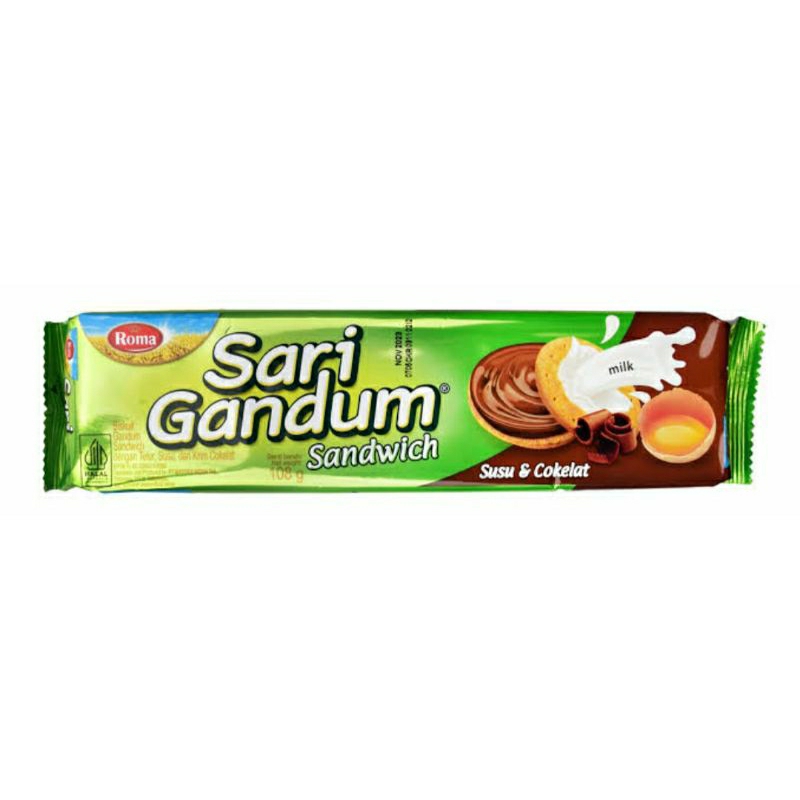 Sari Gandum Sandwich adalah biskuit yang terbuat dari gandum dan kandungan susu dalam biskuitnya. Bentuknya agak berbeda dari biskuit gandum lainnya, karena yang satu ini berbentuk biskuit sandwich. Dimana dua biskuit ditumpuk dengan krim susu coklat ditengahnya. Biskuit Sari Gandum Sandwich ini merupakan biskuit produksi Roma.