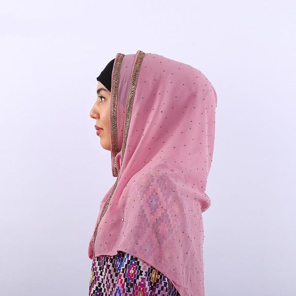 scarves 1 pc arrival plain bling bubble chiffon hijab scarf shimmer with crystal chain edged muslim hijabs, Blue;gray