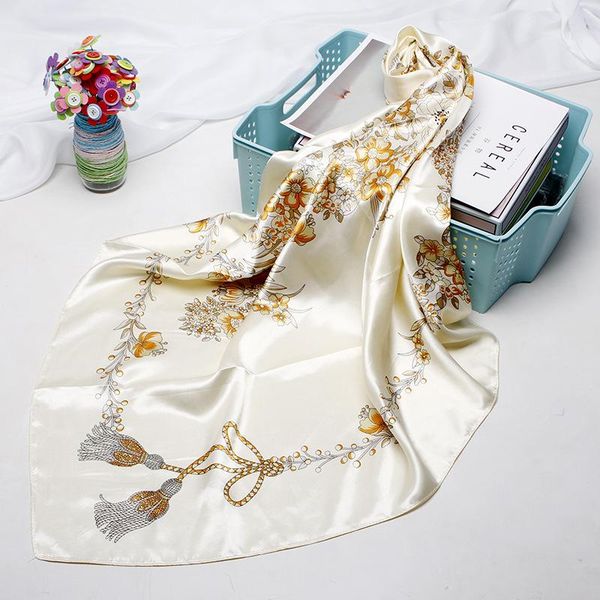 scarves 2021 luxury scarf for women floral print silk satin hijab scarfs female 90cm*90cm square neckerchief headband ladies, Blue;gray