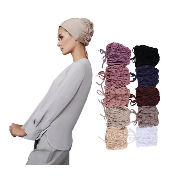 scarves 2021 muslim women elastic tie back jersey hijab underscarf caps soft cotton head wrap turban bonnet islamic arab headscarf, Blue;gray