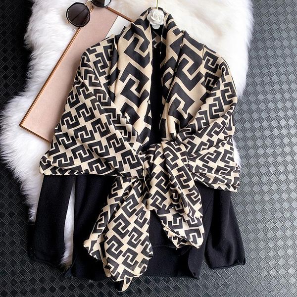 scarves 2021 spain fashion brand designer scarf geometric letter viscose shawl women spring autumn wrap pashmina hijab foulards 180*90cm, Blue;gray