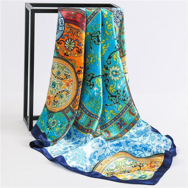 scarves 2021 square scarf for women bandana large shawl hijab foulard neck fashion female neckerchief headband pashmina, Blue;gray