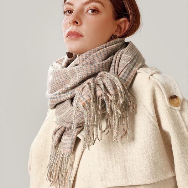 scarves 2021 winter scarf european and american street tassel imitation cashmere retro simple plaid warm shawls for women, Blue;gray