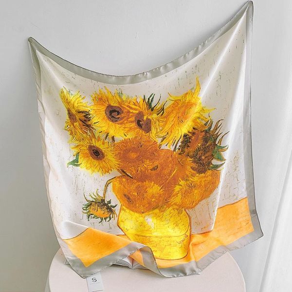 scarves 90cm silk scarf women spring sunflower print manual hand square spain echarpes foulards femme wrap bandana small hijab, Blue;gray