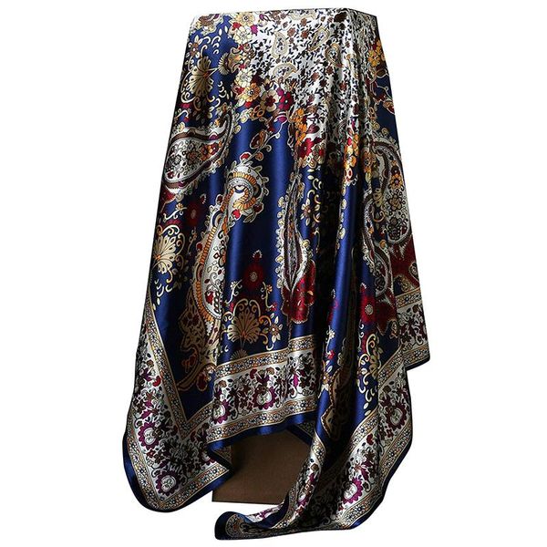 scarves 90cm*90cm square shawls wraps neck for ladies fashion hijab scarf women silk satin print kerchief head scarfs female, Blue;gray