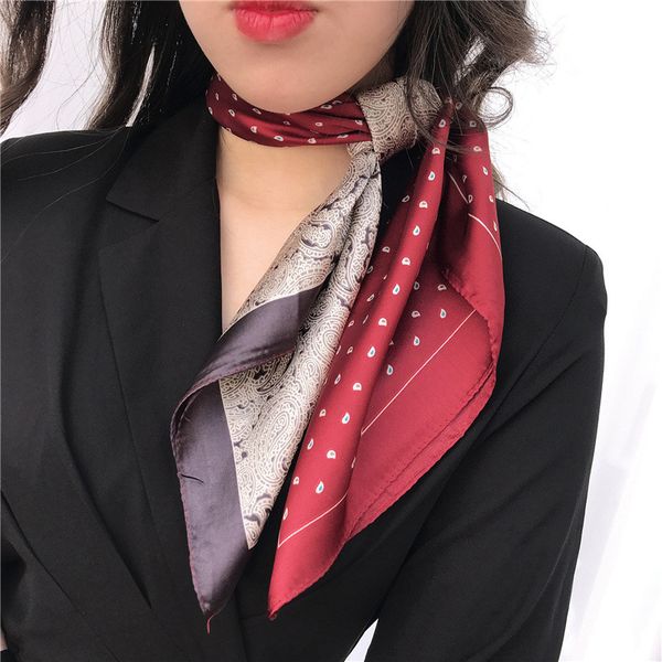 scarves elegant silk satin neck scarf for women paisley print kerchief hair scarfs female 70cm small shawls wrpas bag ladies, Blue;gray