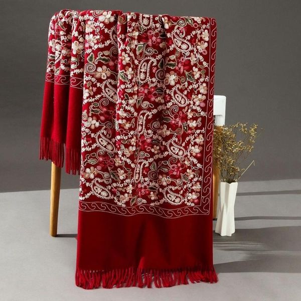 scarves pashmina women shawls embroidery flower wrap chal soft imitation cashmere mujer bufanda scarf tassels muffler poncho cape 221119, Blue;gray