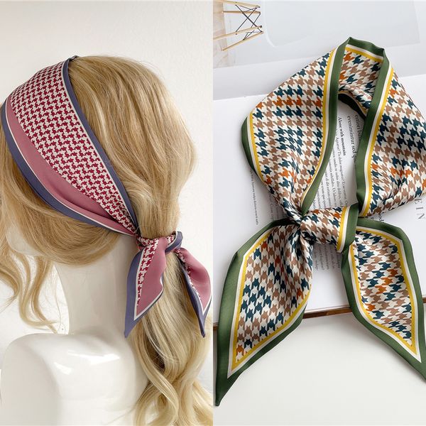 scarves women silk skinny scarf houndstooth soft hair band bag wrist satin ribbon girls headband foulard neckerchief for ladies 230328, Blue;gray