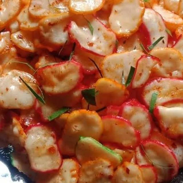 seblak kering berbahan kerupuk bawang dengan tambahan bumbu daun jeruk dan kencur serta cabai dan penyedap bumbu lainnya sehingga tercipta rasa yang menggugah li