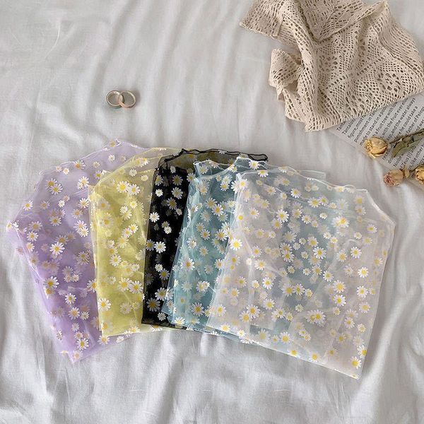 see through transparent mesh womens t shirt long sleeve sheer slim turtleneck daisy shirts, White