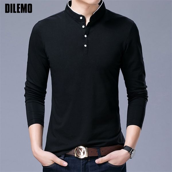 sell fashion brand clothing polo shirt mens long sleeve slim fit boys mandarin colla polos casual men's clothing 220317, White;black