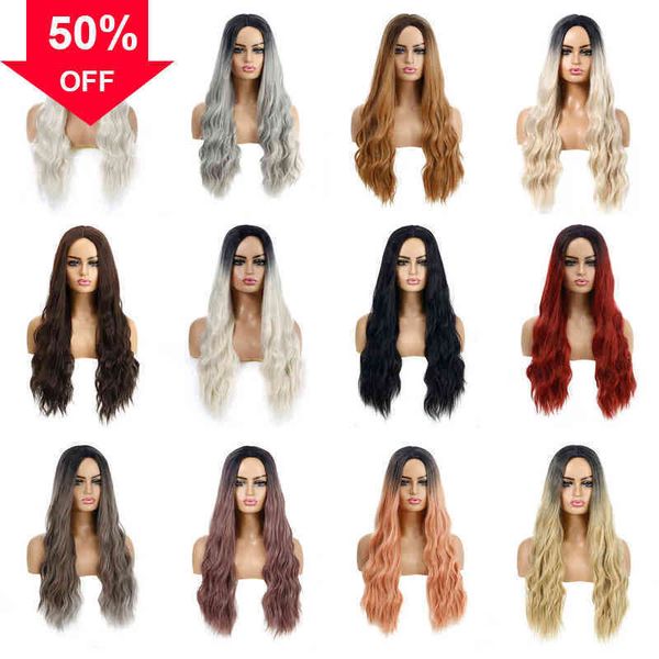 selling wavy women's wig headcover gradient long curly hair, Black