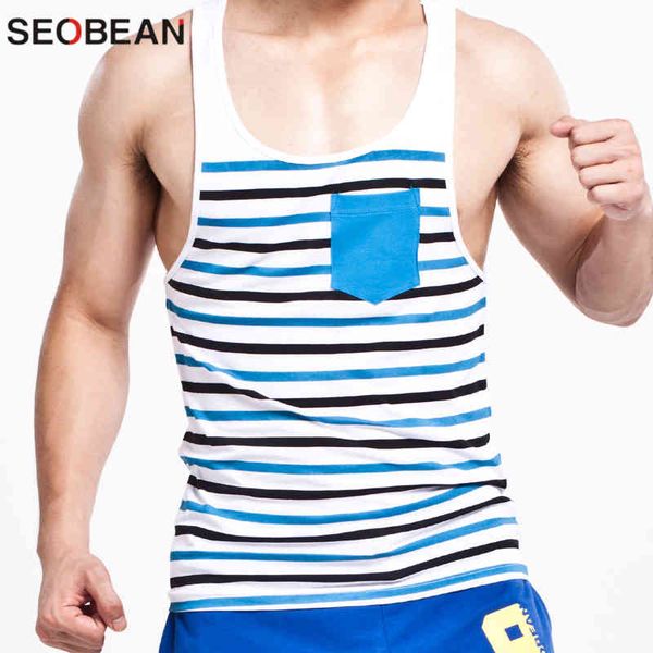 seobean fashion men tanks stripe o-neck sleeveless shirts boys vests summer style undershirt, White;black