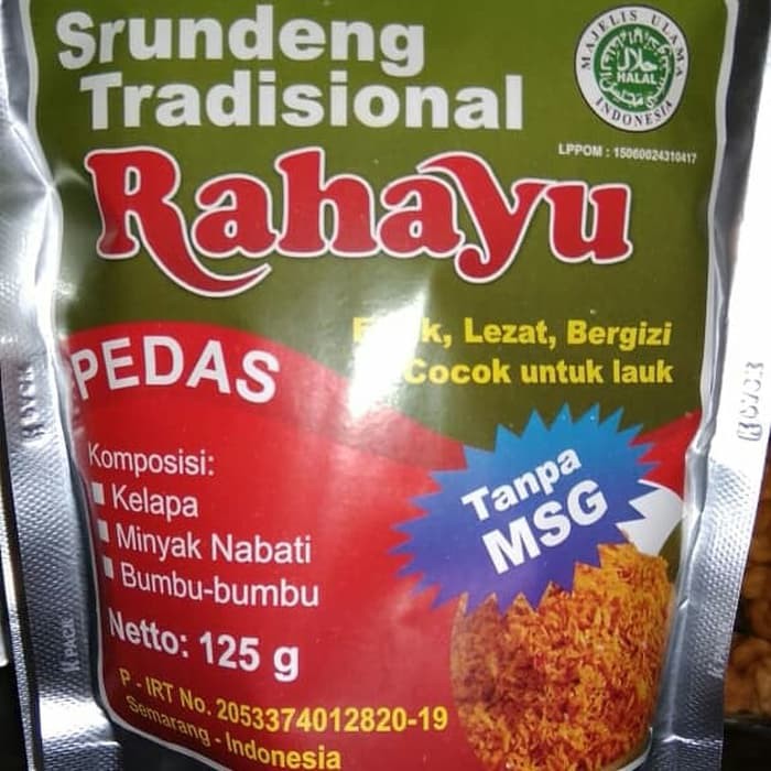 serundeng dengan varian rasa pedas enak dan cocok buat teman makan, tanpa pengawet buatan.