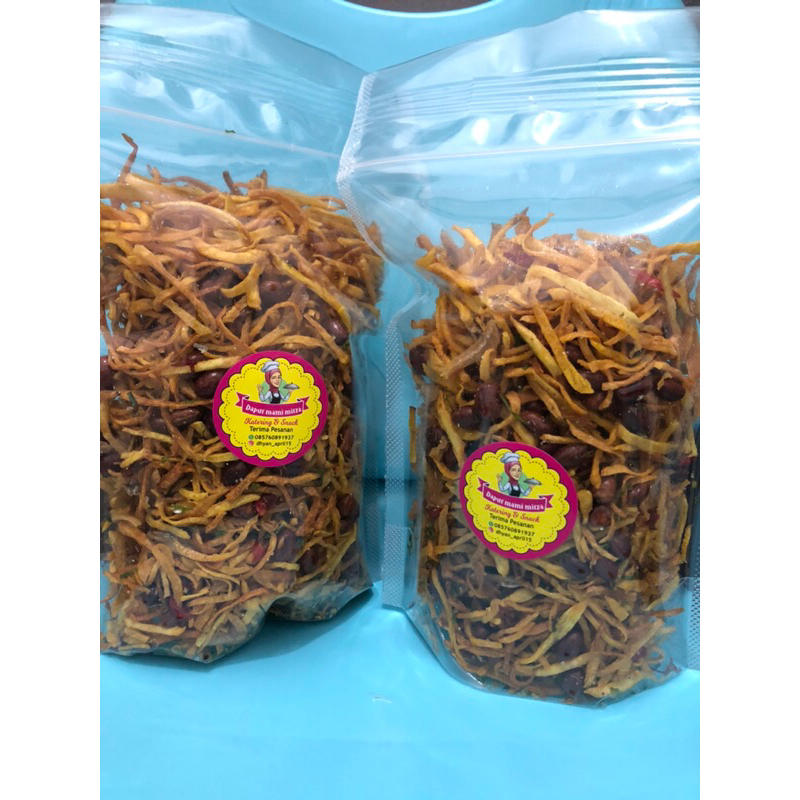 ini kripik terbuat dari ubi rambat, gurih, ada campuran kacang dan ikan teri..makan langsung bisa,campur nasi,bakso,mie juga enak