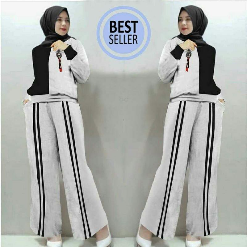 BLACKGREY HDQK blouse Ld106 Pjg 65cm + kulot Pjg 95cm kantong kanan kiri pinggang karet, FULL Bahan babyterry Good Qualit +